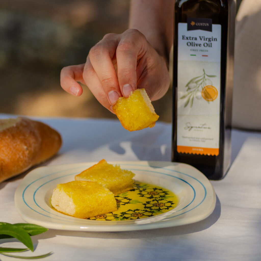 Šodien Gustus turpina ģimenes tradīcijas, ražojot bioloģisko, rokām lasītu augstākā labuma olīveļļu. Katra pudelīte ir kā saikne ar iepriekšējām paaudzēm, ar rūpēm, kas veltītas katram dārzam, un ar vienkāršu prieku dalīties Dieva dāvanās ar citiem – tagad visā Eiropā.
